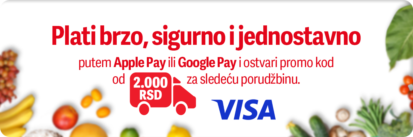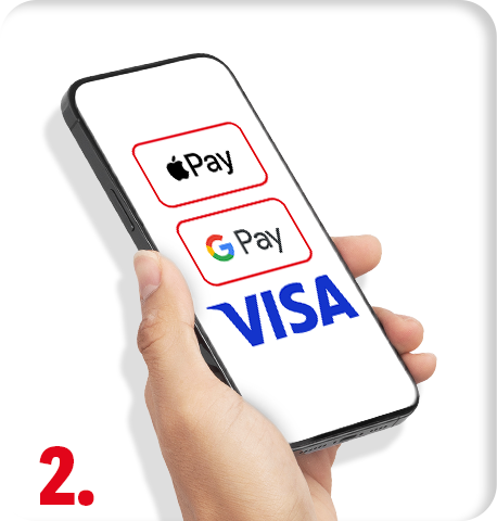 Prilikom plaćanja izaberi Apple ili Google Pay i koristi svoju VISA karticu.