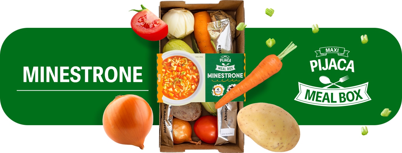 Minestrone supa - jelo koje spaja sezonsko povrće u lagan, ali vitaminski bogat obrok. Jednostavni sastojci i blagi začini daju joj pun ukus. Prijatna je i hranljiva, idealna za predjelo ili lagani obrok, a minestrone meal box će ti olakšati i ubrzati pripremu.