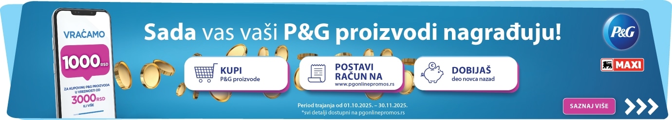 Kampanja važi u periodu 01.10.2025. – 30.11.2025. u odabranim maloprodajnim objektima u Srbiji, pri kupovini P&G proizvoda koji su deo kampanje (osim Braun proizvoda, Pampers mesečnih pakovanja I P&G Professional proizvoda). Povrat po jednom fiskalnom računu iznosi 1.000 RSD (jedno učestvovanje po korisniku predstavljeno je jedinstvenom kombinacijom bankovni račun I I-mejl adresa). Zvanične uslove kampanje možete pronaći besplatno na pgonlinepromos.rs